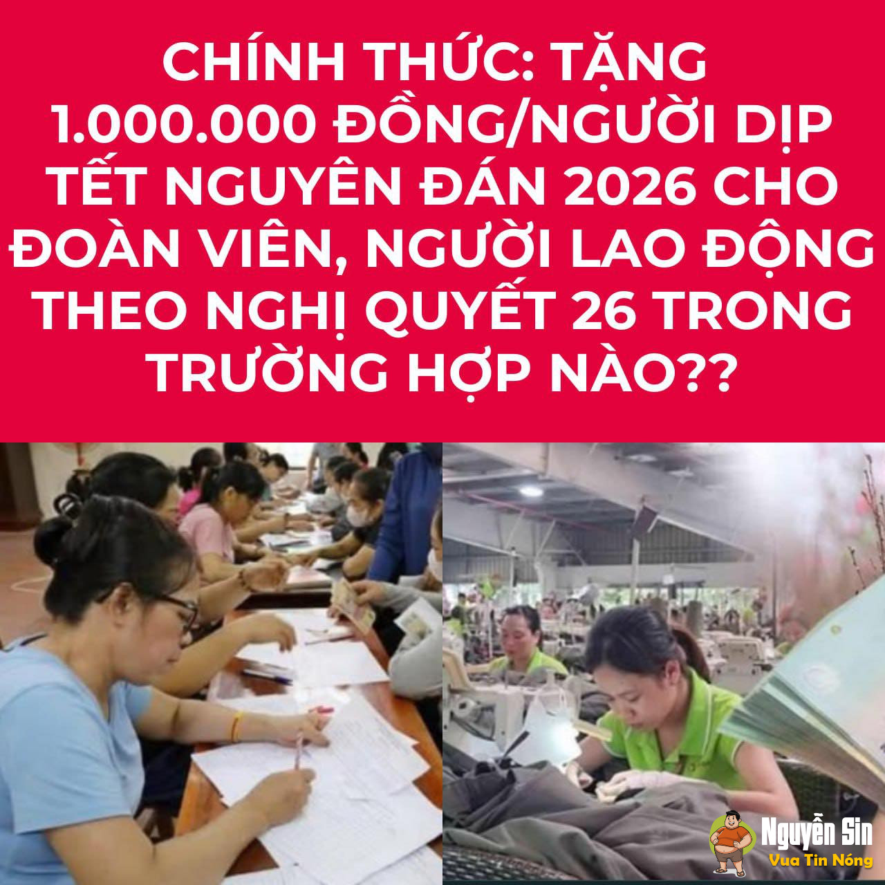 Chuyên trang Góc nhìn pháp lý ngày 24/12/2025 đưa tin: “Chính thức: Tặng 1.000.000 đồng/người dịp Tết Nguyên đán 2026 cho đoàn viên, người lao động theo Nghị quyết 26 trong trường hợp nào?”, nội dung như sau: