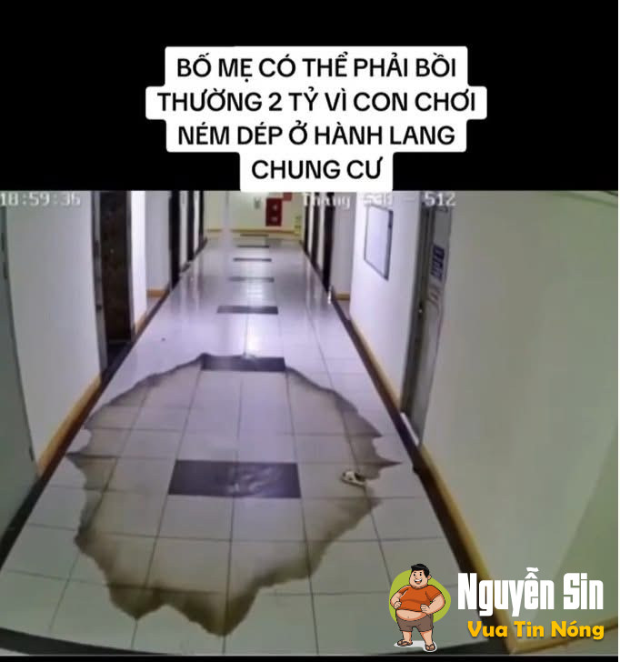 “Vào hồi 19h ngày 27/09/2025, 3 cháu nhỏ chơi ném dép tại sảnh chung cư. Một trong 3 cháu đã ném dép chúng van nước cứu hỏa trên trần nhà khiến cho nước chảy lênh láng trong nhiều giờ liền. Nước đã tràn vào thang máy gây lỗi thang máy.